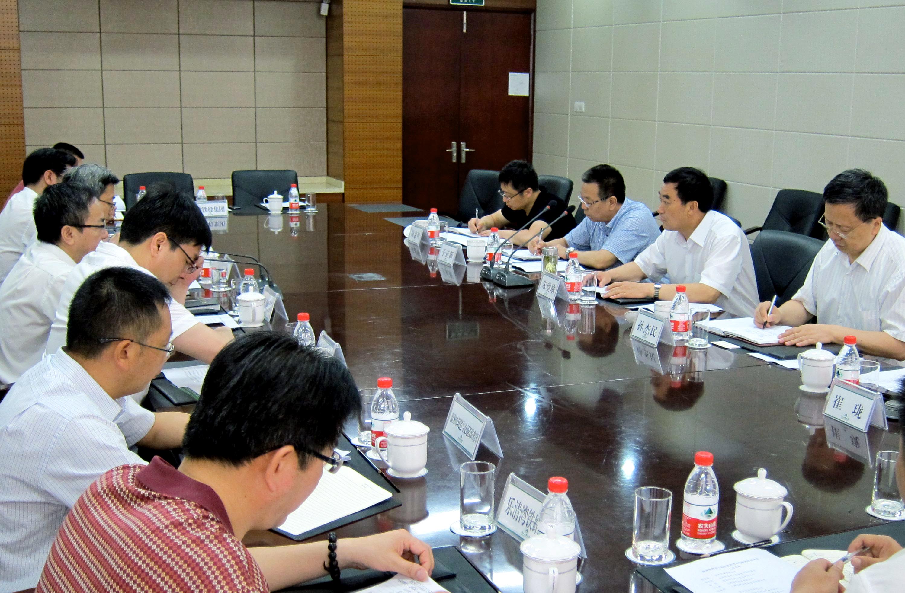 5月28日,国家铁路局副局长朱望瑜(右二)在杭州与浙江省发展改革委、省铁投集团领导座谈调研。