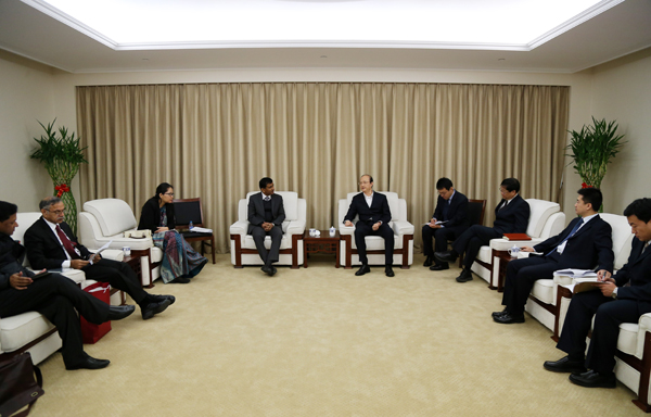 12月1日,国家铁路局党组成员郑健(右一)在北京会见了印度高速铁路公司董事长阿格尼霍特里一行。双方就中印铁路合作有关后续推进工作交换了意见。