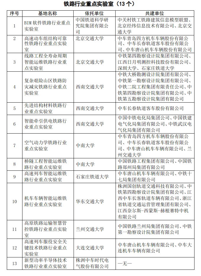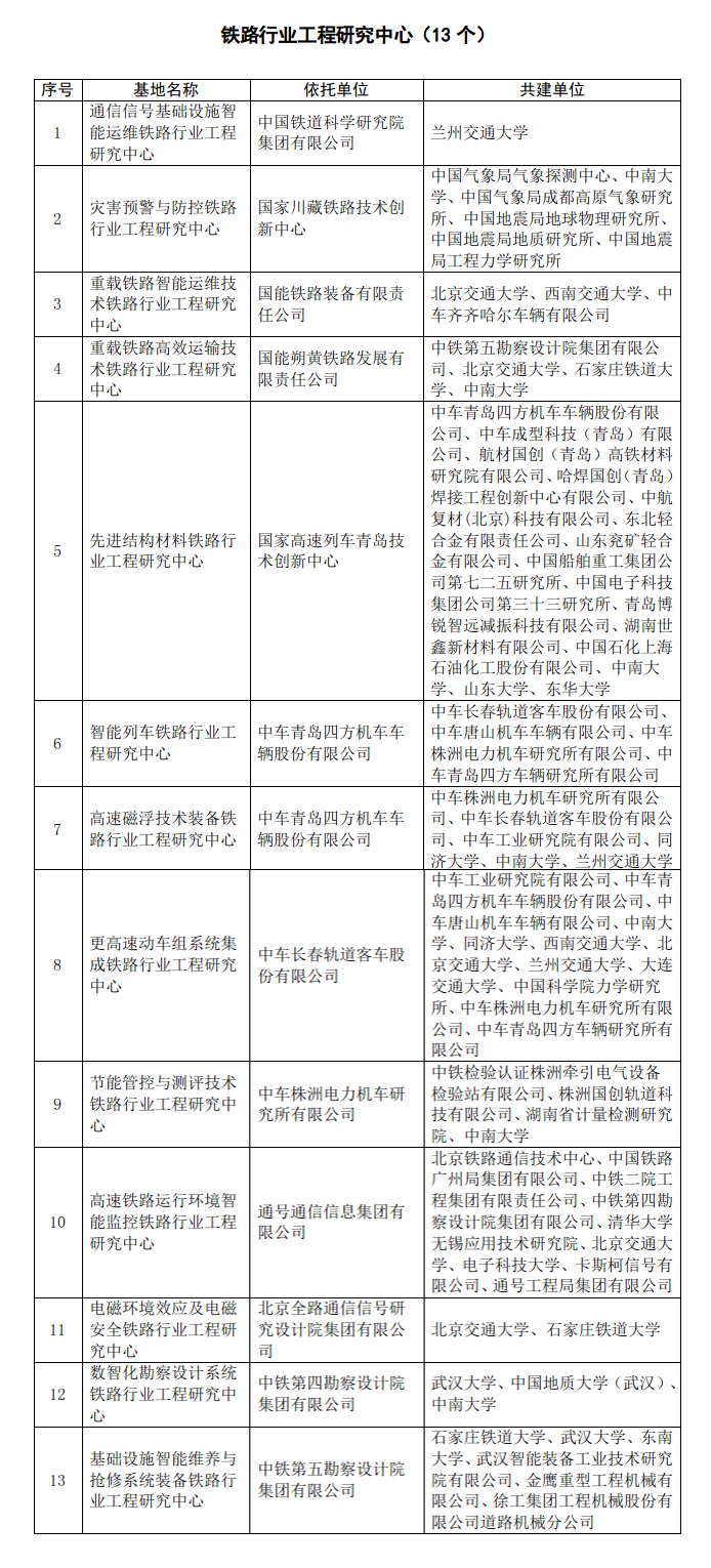 国家铁路局关于公布第二批铁路行业科技创新基地的通知
