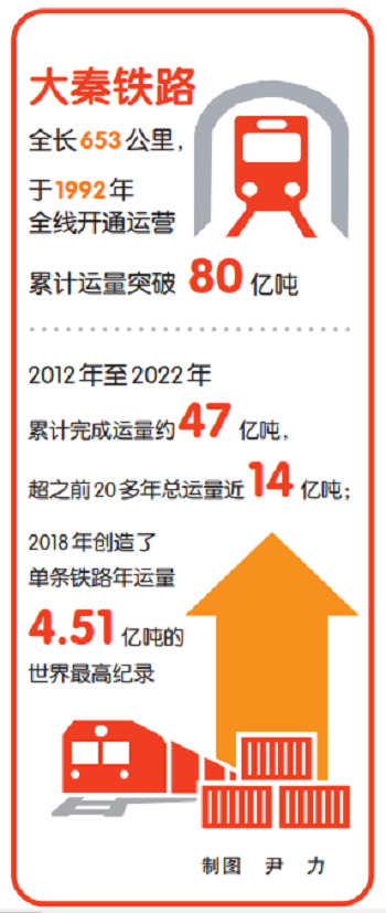 进入新时代,大秦铁路人继续砥砺奋进。2012年至2022年,大秦铁路累计完成运量约47亿吨,超之前20多年总运量近14亿吨,并于2018年创造了单条铁路年运量4.51亿吨的世界最高纪录。