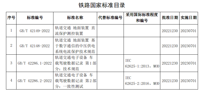 《轨道交通 地面装置 直流保护测控装置》等4项铁路国家标准正式颁布