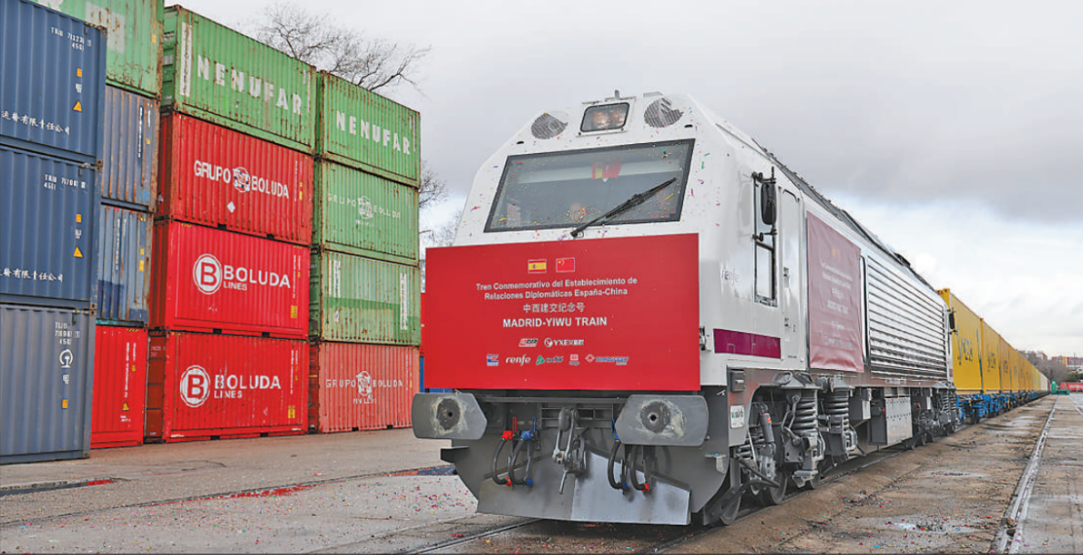 2023年是中西建交50周年,也是共建“一带一路”倡议提出10周年。2014年底,首列“义新欧”班列从义乌出发,历时21天抵达马德里,这条全长1.3万公里的中欧班列铁路线,开辟了中欧经贸往来的新通道。9年来,“义新欧”班列开行超过5000列,线路增加至19条,并根据西班牙当地市场需求,发出运送茶叶、防疫物资、跨境电商产品、汽车等不同类型的客户定制专列。一列列“钢铁驼队”为中西合作共赢贡献力量。