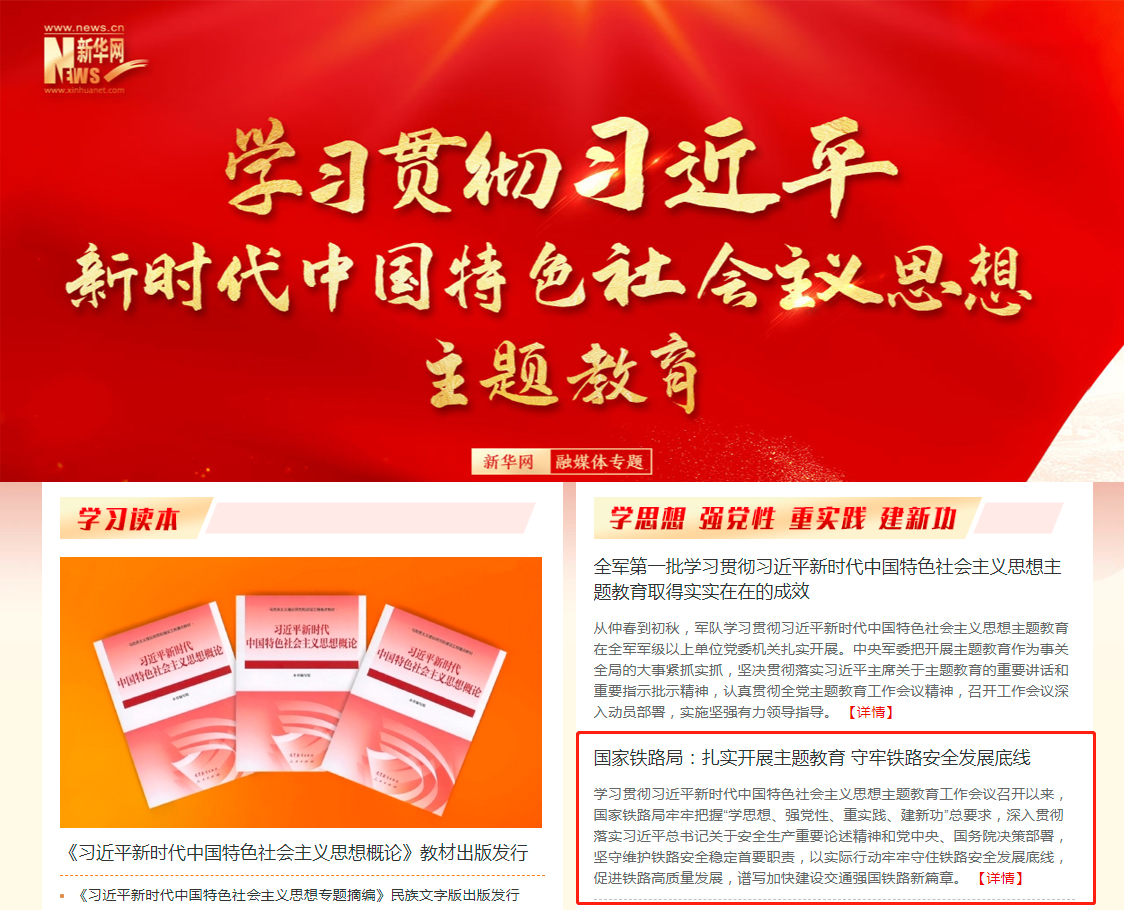 点此查看新华社报道:学思想、强党性、重实践、建新功丨国家铁路局:扎实开展主题教育 守牢铁路安全发展底线