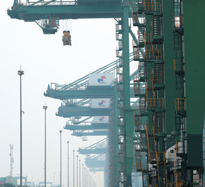 依托天津港的区位优势,海铁联运成为天津中欧班列的特色。图为9月18日,天津港集装箱岸桥作业现场。