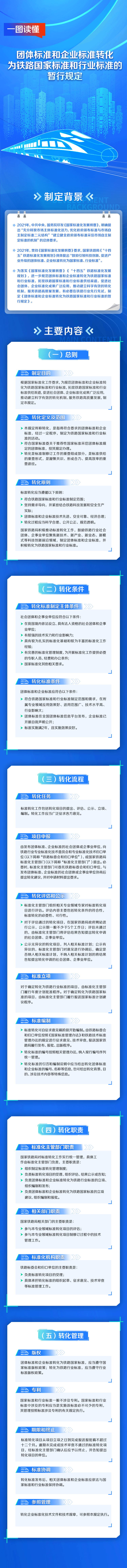 为落实《国家标准化发展纲要》《“十四五”铁路标准化发展规划》,国家铁路局组织制定了《暂行规定》,明确了团体标准和企业标准转化为铁路国家标准和行业标准的条件、流程、职责、管理等要求,畅通了转化渠道,提升了转化效率,是铁路行业标准转化工作的重要依据。