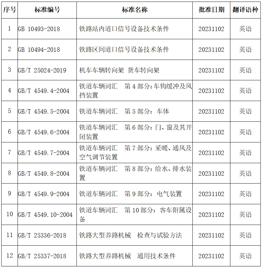 《铁路站内道口信号设备技术条件》等12项铁路国家标准外文译本正式发布