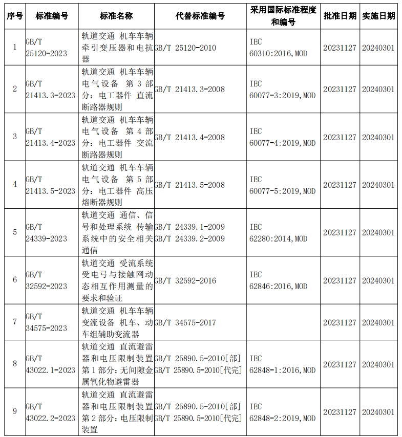 近日,由国家铁路局组织编制的《轨道交通 机车车辆牵引变压器和电抗器》等9项铁路国家标准,经国家标准化管理委员会审批后正式发布。9项标准均为修订标准,将于2024年3月1日实施。该9项标准是中国铁路技术标准体系的重要组成部分,其发布为铁路产品的设计、制造、检验等提供了技术依据,对保障铁路运营安全和提高产品质量将起到积极的作用。