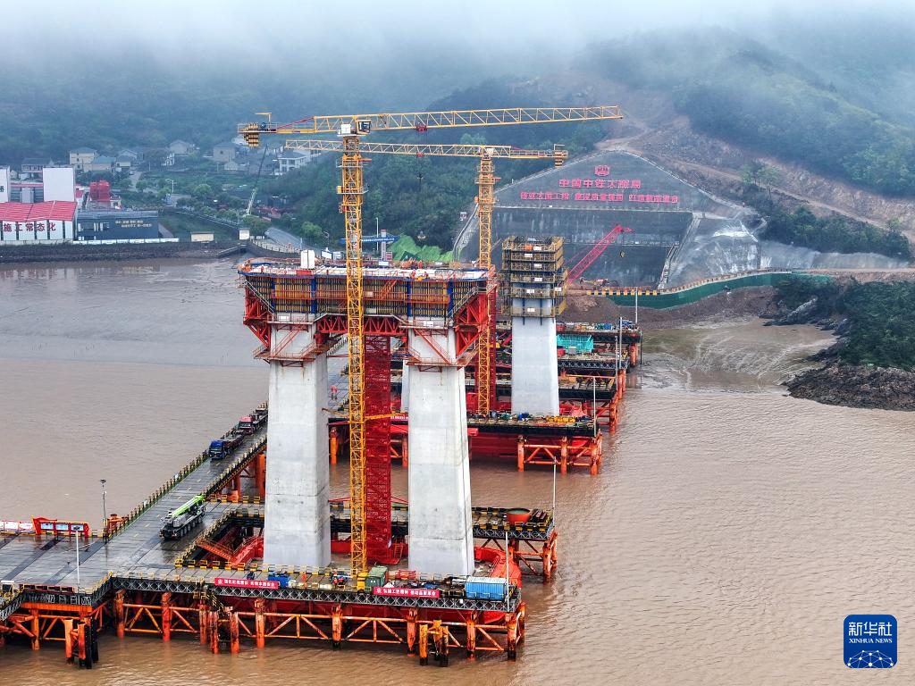甬舟铁路西堠门公铁两用大桥6号墩建设现场。
