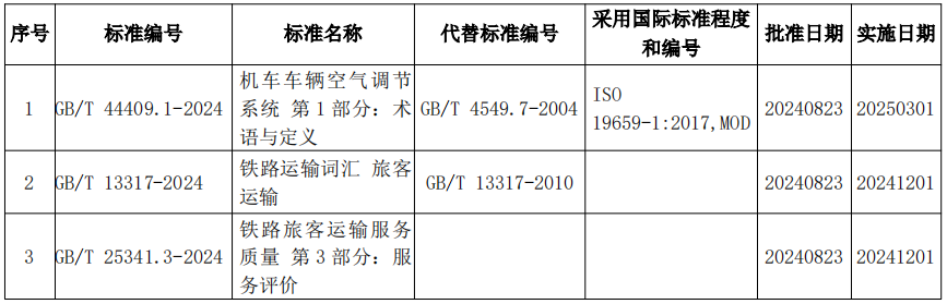 《机车车辆空气调节系统 第1部分:术语与定义》等3项铁路国家标准正式发布