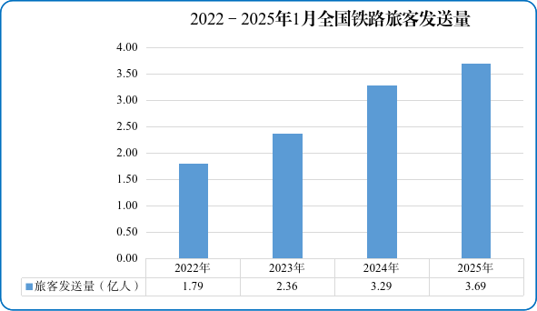 国家铁路局:2025年1月份全国铁路客运量比2024年同期增长12.1%