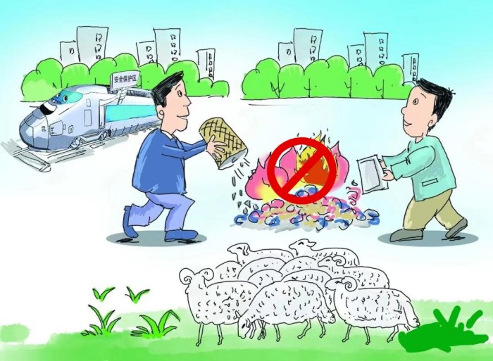 清明时节,扫墓祭祖、焚香烧纸、郊游、踏青等活动增多,极易引发火灾,特别是铁路沿线焚火烧荒行为会危及铁路安全,甚至导致铁路交通事故。禁止在铁路线路安全保护区内焚火烧荒,依法保护铁路安全和群众生命财产安全是每个公民的义务。