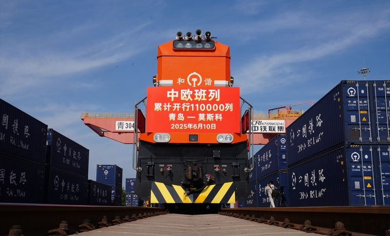 2025年6月10日8时32分,随着75052次中欧班列从青岛胶州站开出,中欧班列历年累计开行突破11万列,发送货值超4500亿美元。