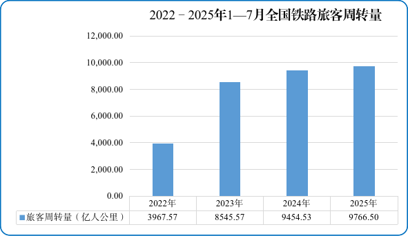 图2 2022—2025年1—7月全国铁路旅客周转量