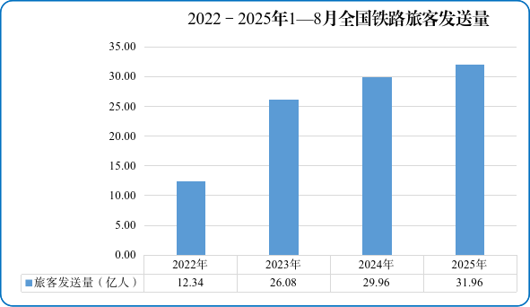 图1 2022—2025年1—8月全国铁路旅客发送量