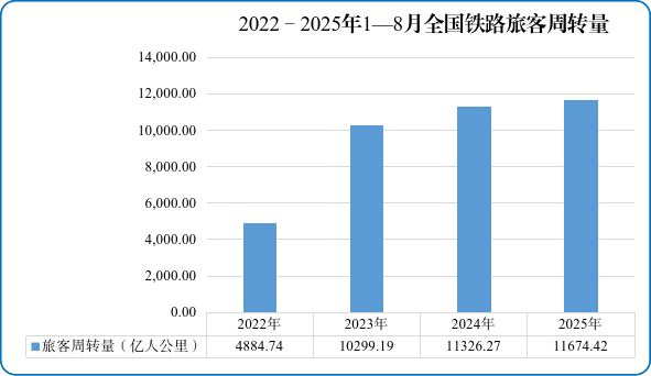 图2 2022—2025年1—8月全国铁路旅客周转量