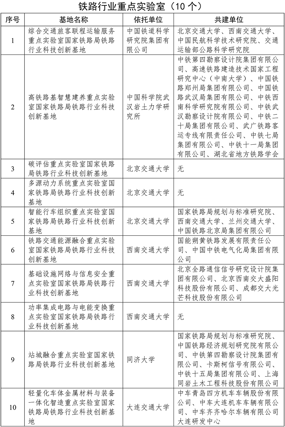 根据《铁路行业科技创新基地管理办法(试行)》(国铁科法规〔2020〕38号),国家铁路局组织开展了第三批铁路行业科技创新基地认定工作,现将认定结果予以公布。