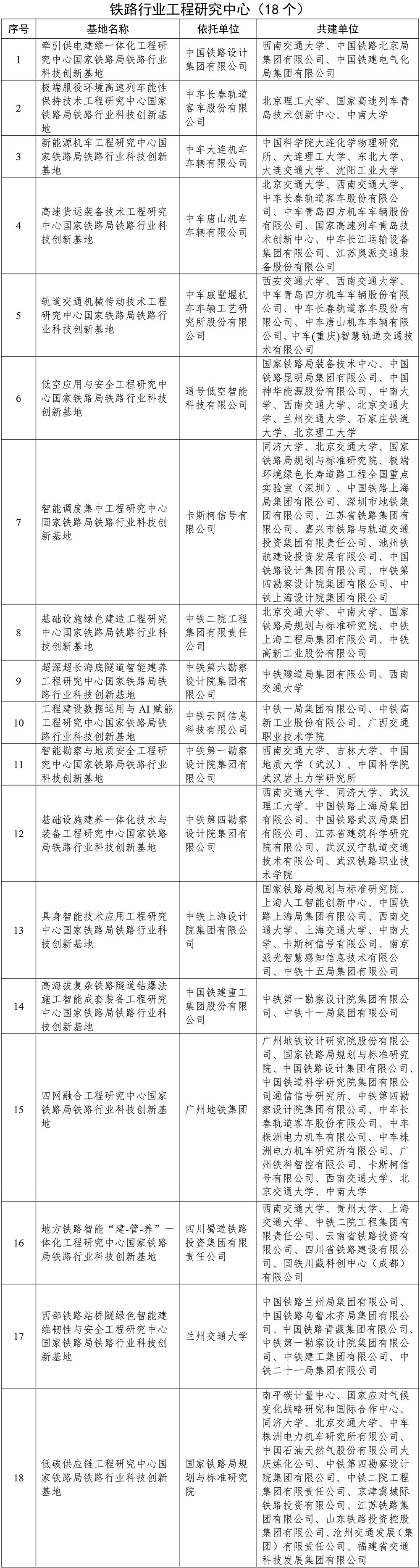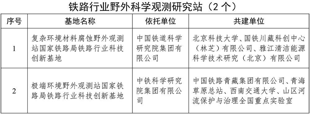 国家铁路局关于公布第三批铁路行业科技创新基地的通知