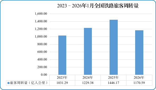 图2 2023—2026年1月全国铁路旅客周转量