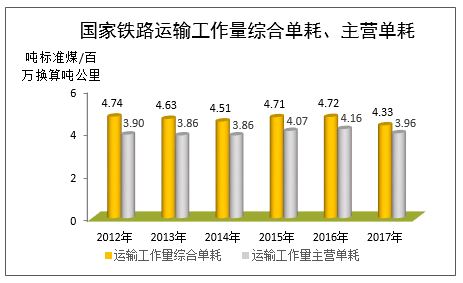 综合能耗。国家铁路能源消耗折算标准煤1621.65万吨,比上年增加24.75万吨,增长1.5%。单位运输工作量综合能耗4.33吨标准煤/百万换算吨公里,比上年减少0.39吨标准煤/百万换算吨公里。单位运输工作量主营综合能耗3.96吨标准煤/百万换算吨公里,比上年减少0.20吨标准煤/百万换算吨公里,下降4.8%。