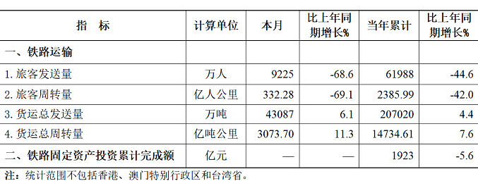 2022年5月份全国铁路主要指标完成情况