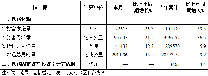 2022年7月份全国铁路主要指标完成情况