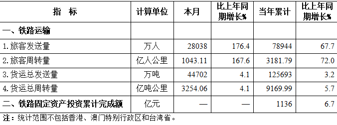 2023年3月份全国铁路主要指标完成情况