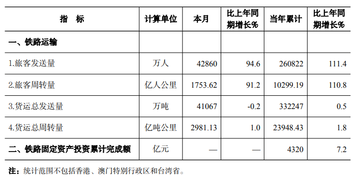 2023年8月份全国铁路主要指标完成情况