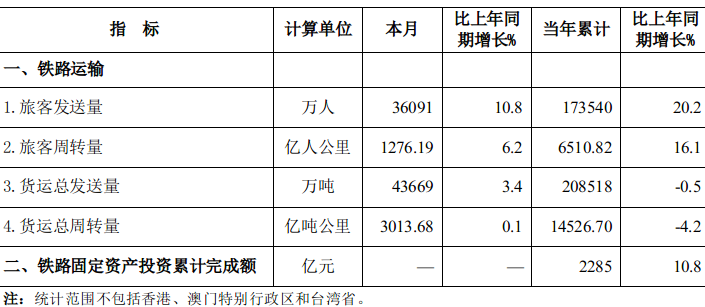 2024年5月份全国铁路主要指标完成情况