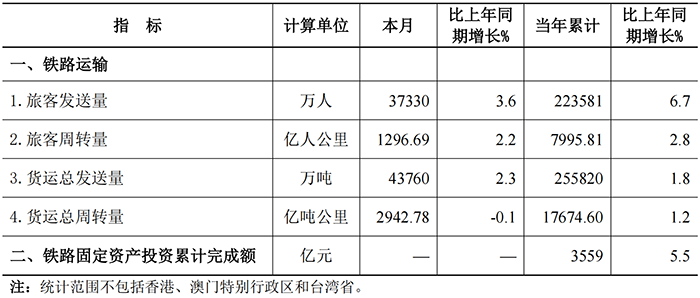 2025年6月份全国铁路主要指标完成情况