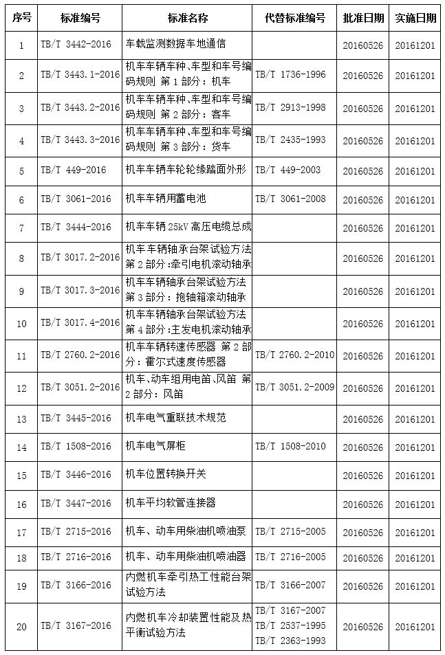 国家铁路局批准发布以下20项铁道行业标准,现予以公布。