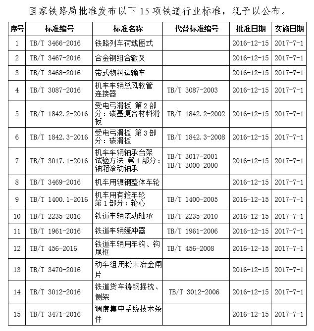 国家铁路局关于发布铁道行业标准的公告