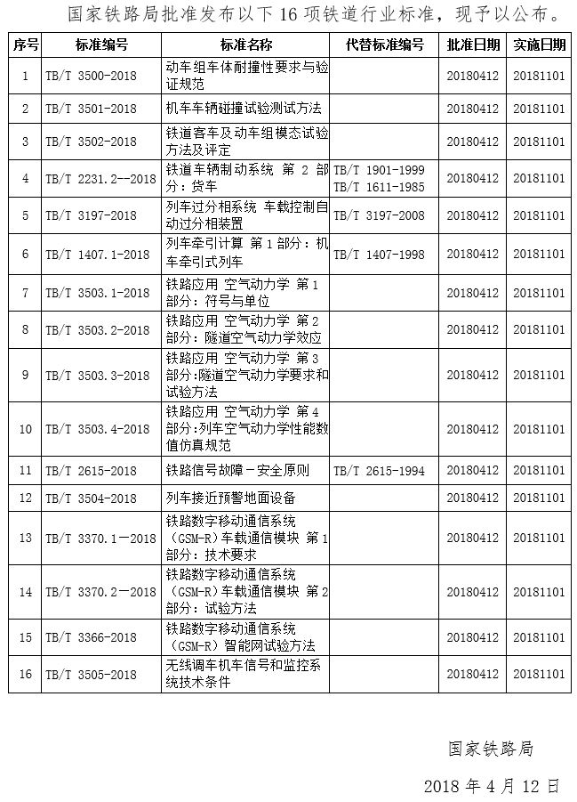 铁路技术标准(2018年第2批)