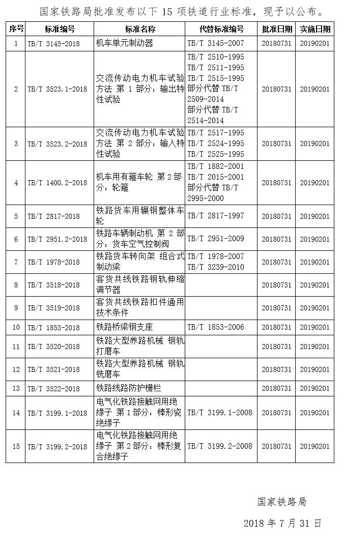 铁路技术标准(2018年第7批)