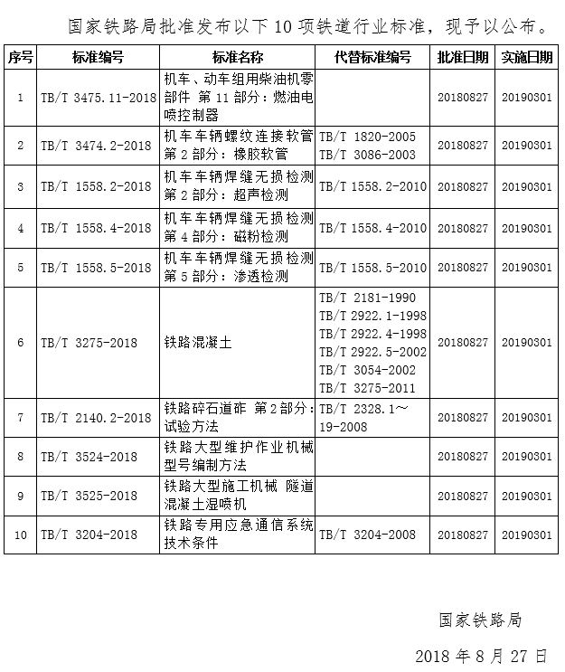 铁路技术标准(2018年第8批)