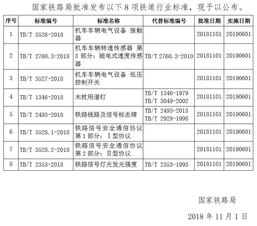 国家铁路局关于发布铁道行业标准的公告