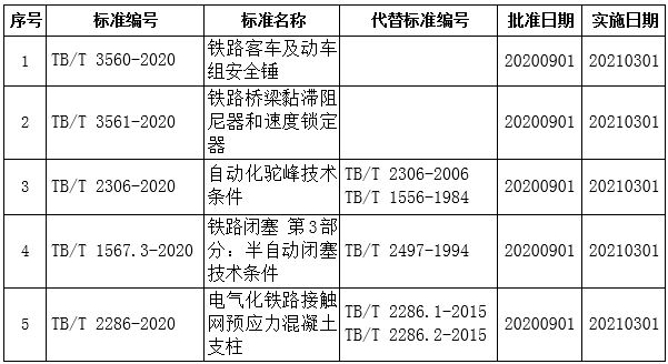 国家铁路局关于发布铁道行业标准的公告(技术标准2020年第4批)