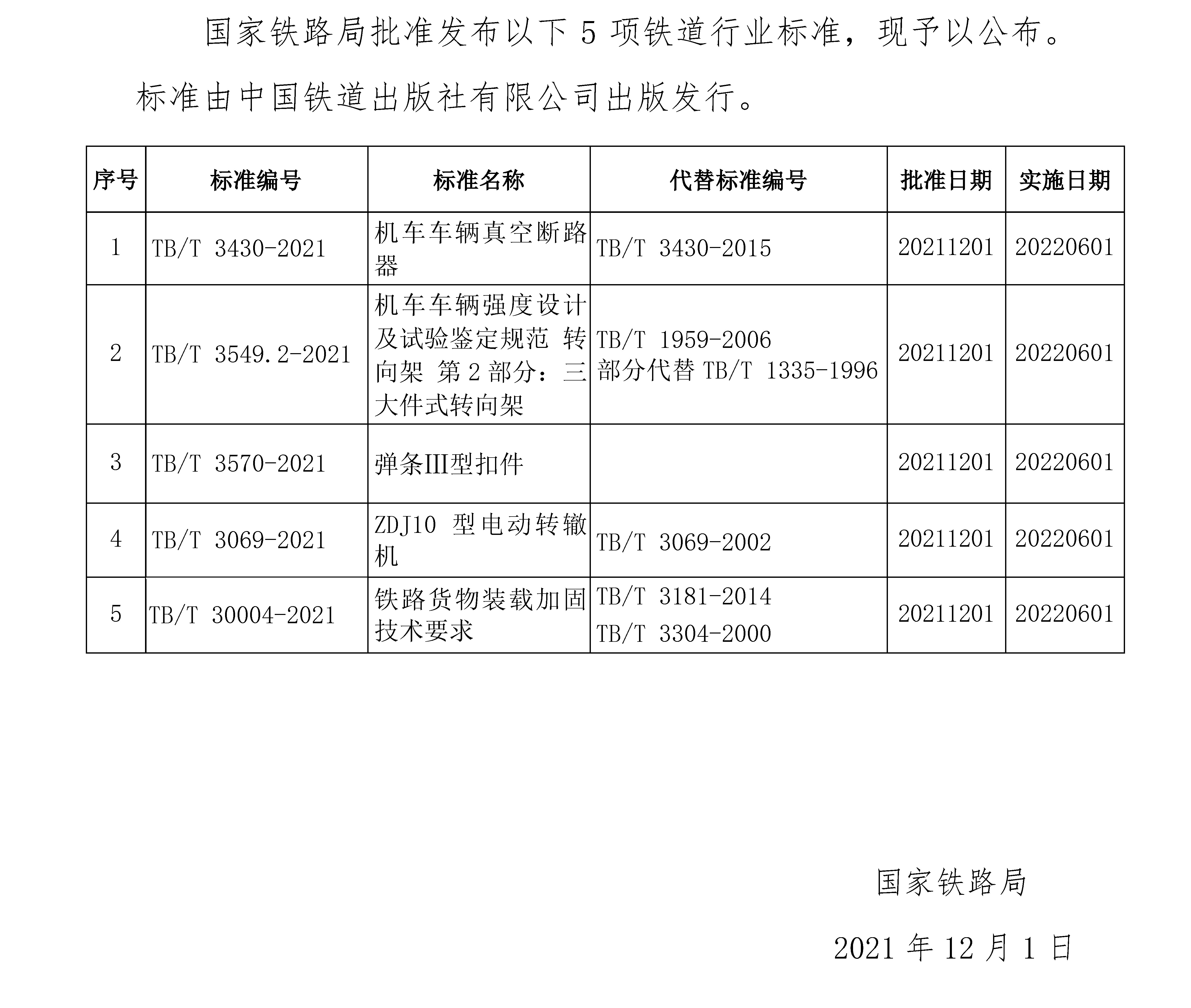 国家铁路局关于发布铁道行业标准的公告(技术标准2021年第4批)