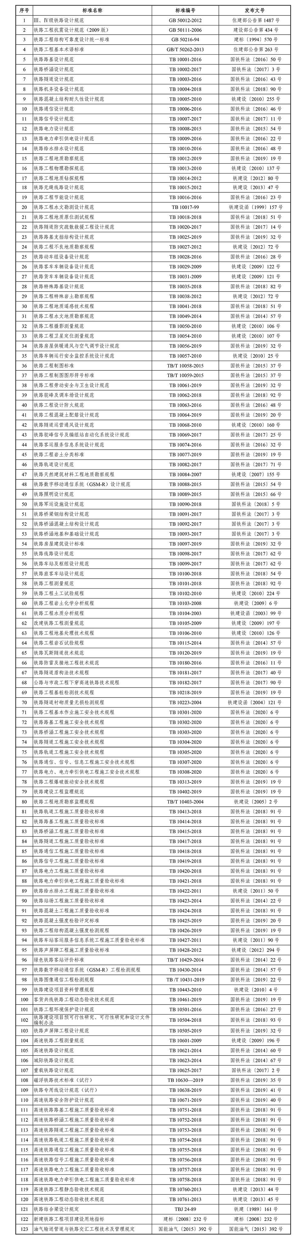 铁路工程建设标准目录(截至2020年3月31日)
