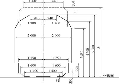 (2)双层集装箱运输基本建筑限界图(内燃牵引区段)