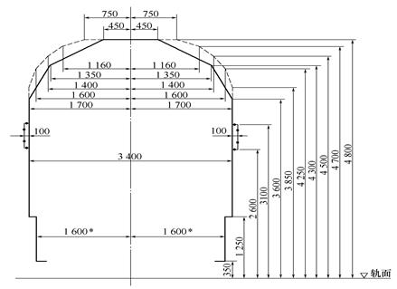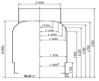 *电力机车在距轨面高350 mm~1 250 mm范围内为1 675 mm。