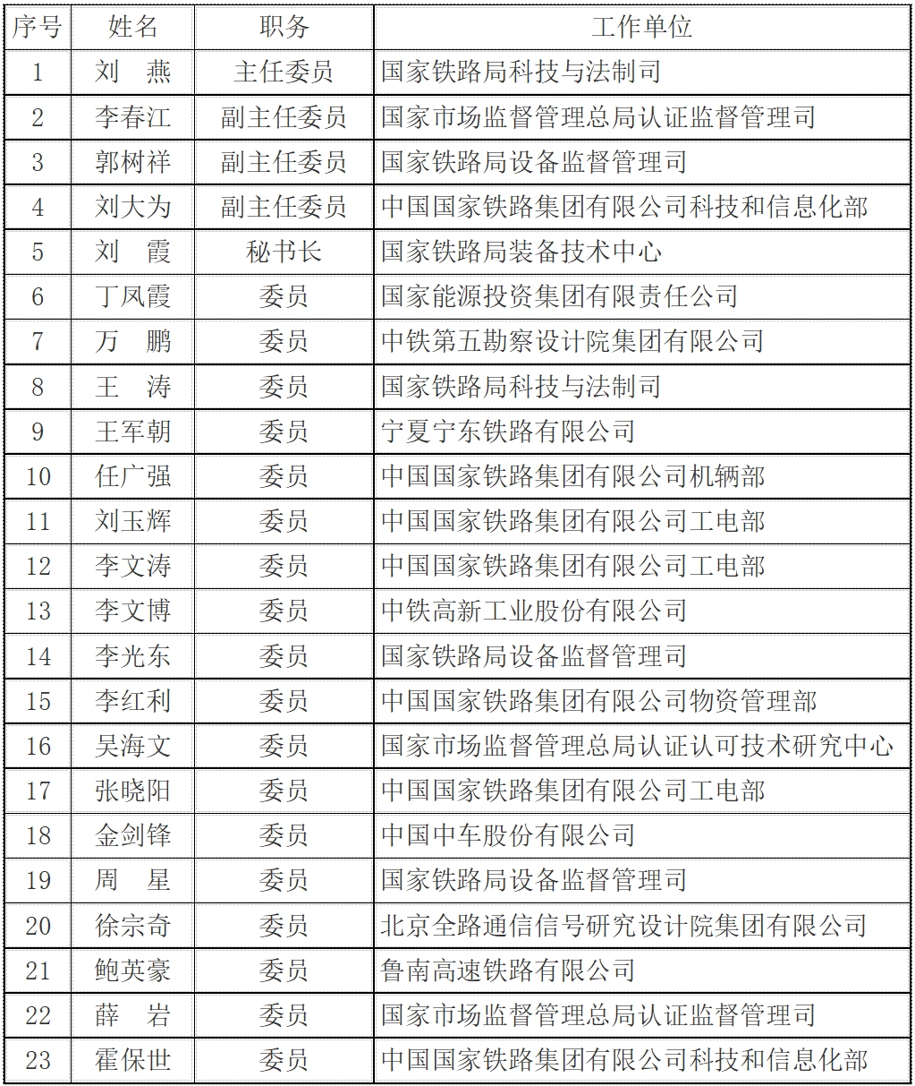 市场监管总局 国家铁路局关于发布铁路产品认证目录(第一批)和铁路产品认证技术委员会成员名单的公告