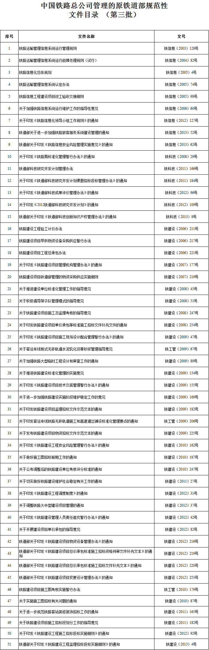 附件:中国铁路总公司管理的原铁道部规范性文件目录(第三批)