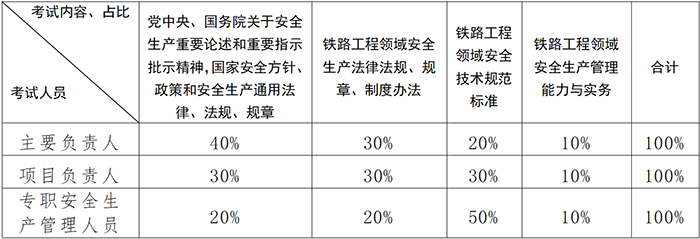 铁路工程施工企业主要负责人、项目负责人和专职安全生产管理人员安全考核大纲