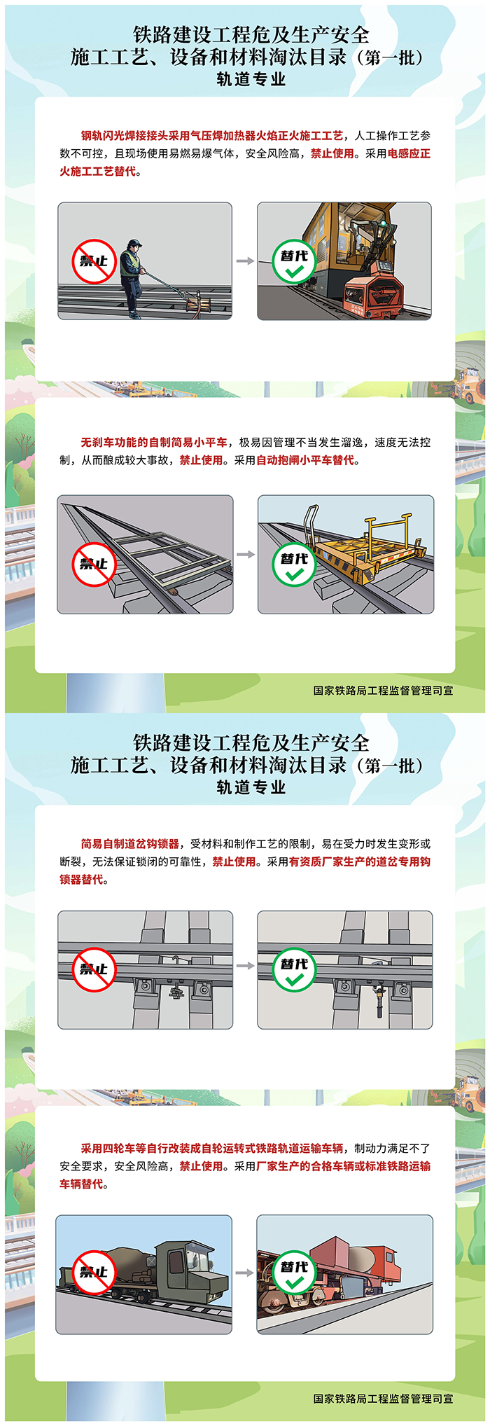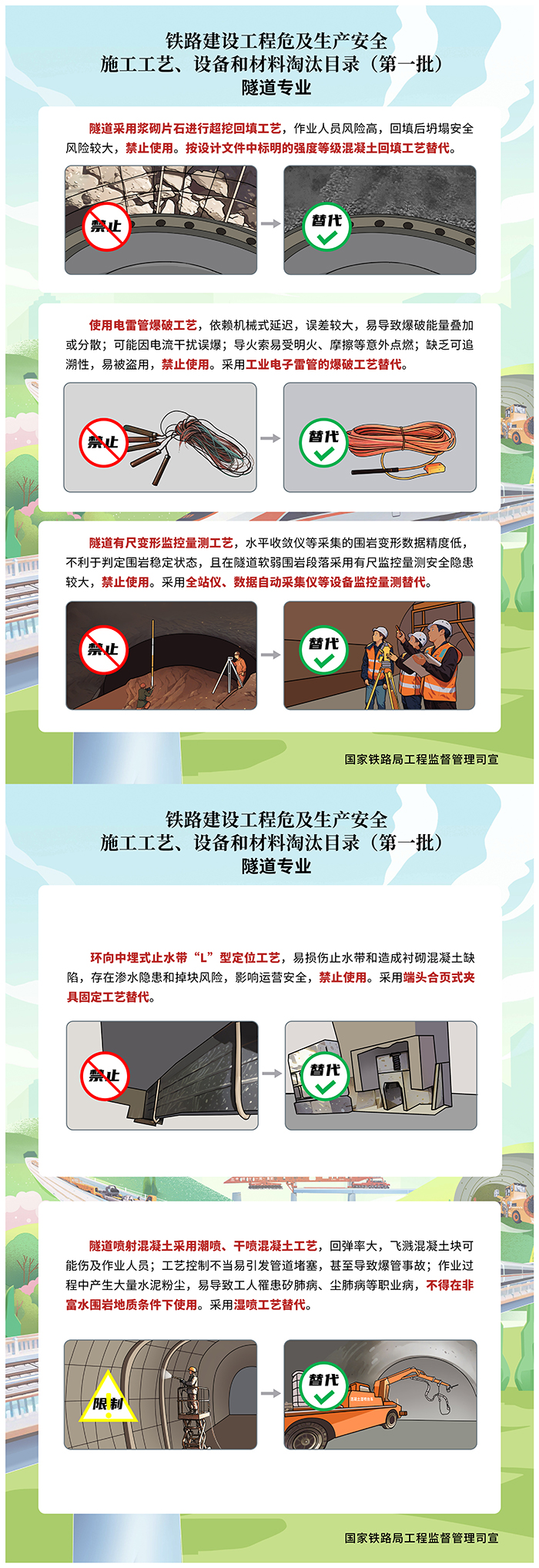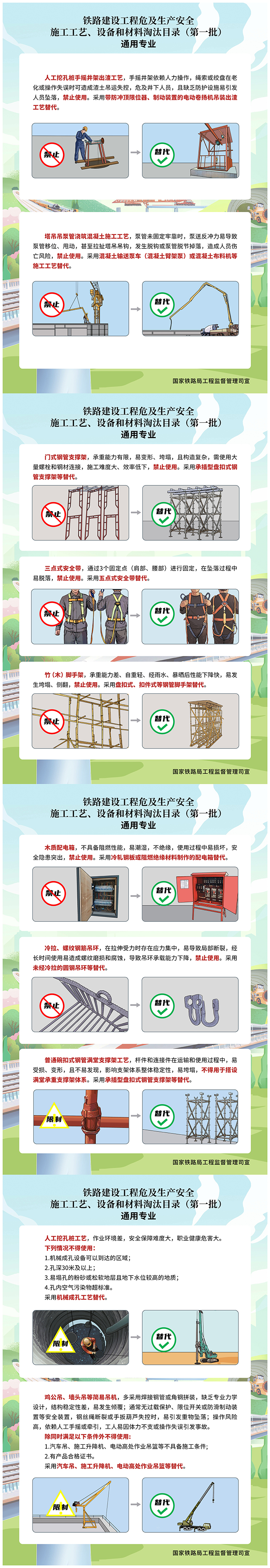 《铁路建设工程危及生产安全施工工艺、设备和材料淘汰目录(第一批)》宣传海报