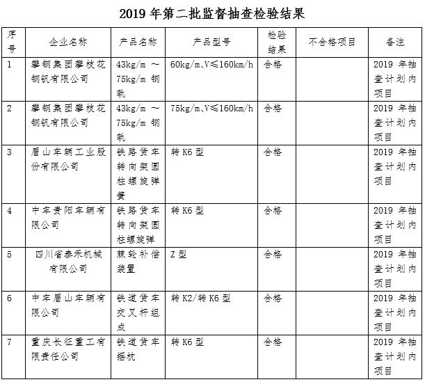成都铁路监督管理局 关于监督抽查铁路专用产品质量情况的通报(2019年第2批)