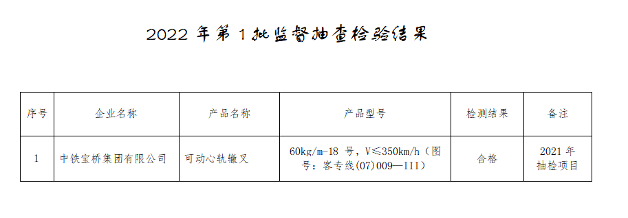 根据《铁路专用产品质量监督抽查管理办法》(国铁设备监规〔2020〕63号),现将2022年第1批铁路专用产品质量监督抽查情况通报如下: