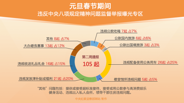 每周通报:各级纪检监察机关查处105起违反中央八项规定精神问题