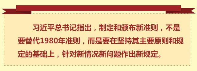 坚持集体领导、反对个人专断,维护党的集中统一、严格遵守党的纪律,要讲真话、言行一致,接受党和群众的监督、不准搞特权……1980年准则的主要原则和规定得到进一步重申。新老准则相互联系、一脉相承,都是当前和今后一个时期党内政治生活所必须遵循的。