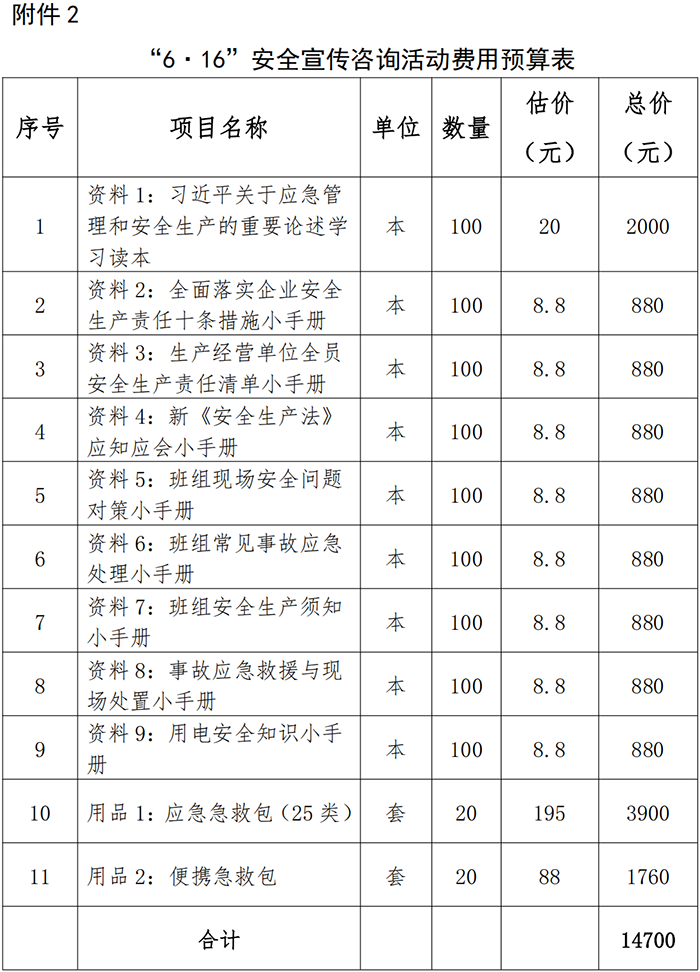 附件2:“6·16”安全宣传咨询活动费用预算表