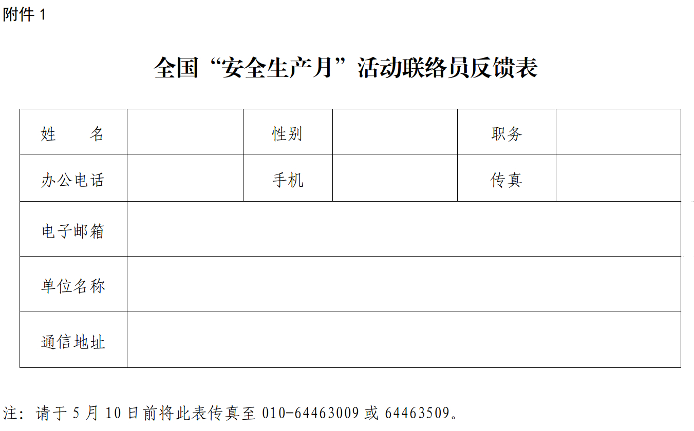 附件:1.全国“安全生产月”活动联络员反馈表